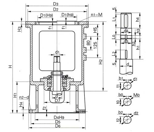 | 減速機輸出軸徑d0 | 減速機類別代號 | D1 | D2 | D3 | n1-M | f1 |